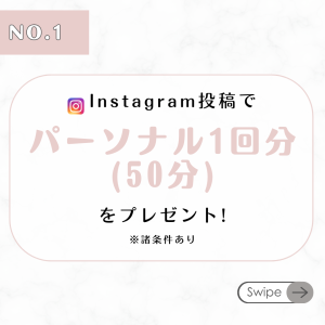 1️⃣Instagram投稿でパーソナル1回(50分)プレゼント
