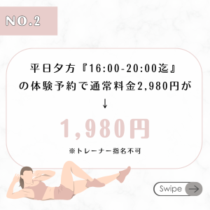 2️⃣平日夕方16:00-20:00迄の体験予約で