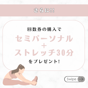 回数券購入でセミパーソナル+ストレッチ30分プレゼント
