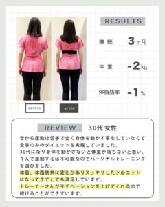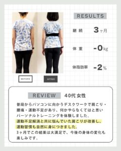 実際にパーソナルトレーニングを受けていただいたお客様の声とbefore→afterをご紹介します!