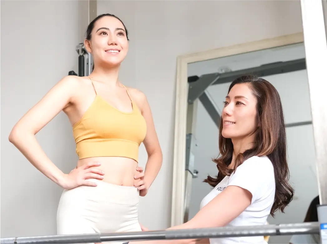 10代の頃からダイエットのためには運動と食事が必要不可欠だと考え、様々なダイエット方法を試してみました。20代になり、ジムでボディビルダーと出会い、筋肉トレーニングによって体型が変わることを知り、ボディメイクとしてのトレーニングを始めました。しかし、ウエイトトレーニングだけでは思い通りの体型にならないことに気づき、ヨガやファンクショナルトレーニングなど様々なトレーニング方法を試し続けました。